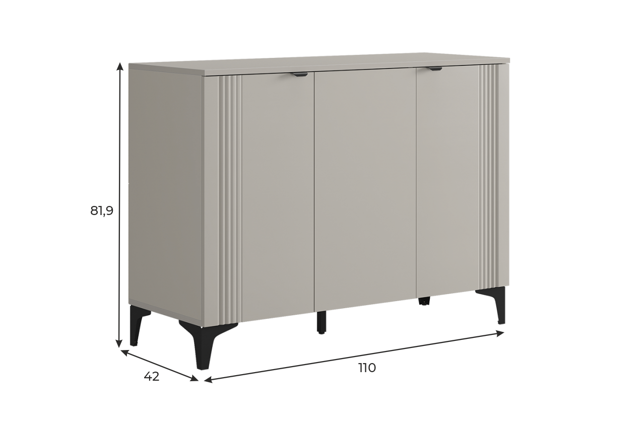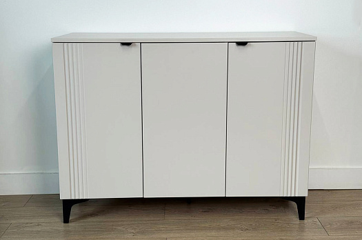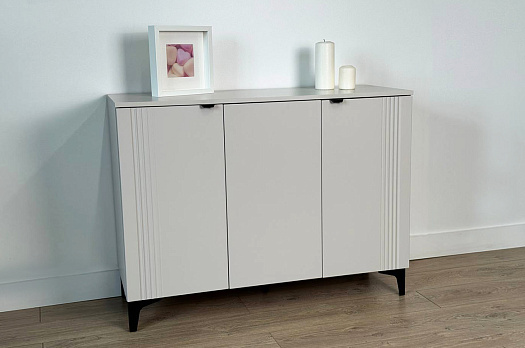 Дверцы комода выполнены из МДФ с фрезеровкой и скрывают за собой просторное хранилище для различных вещей.