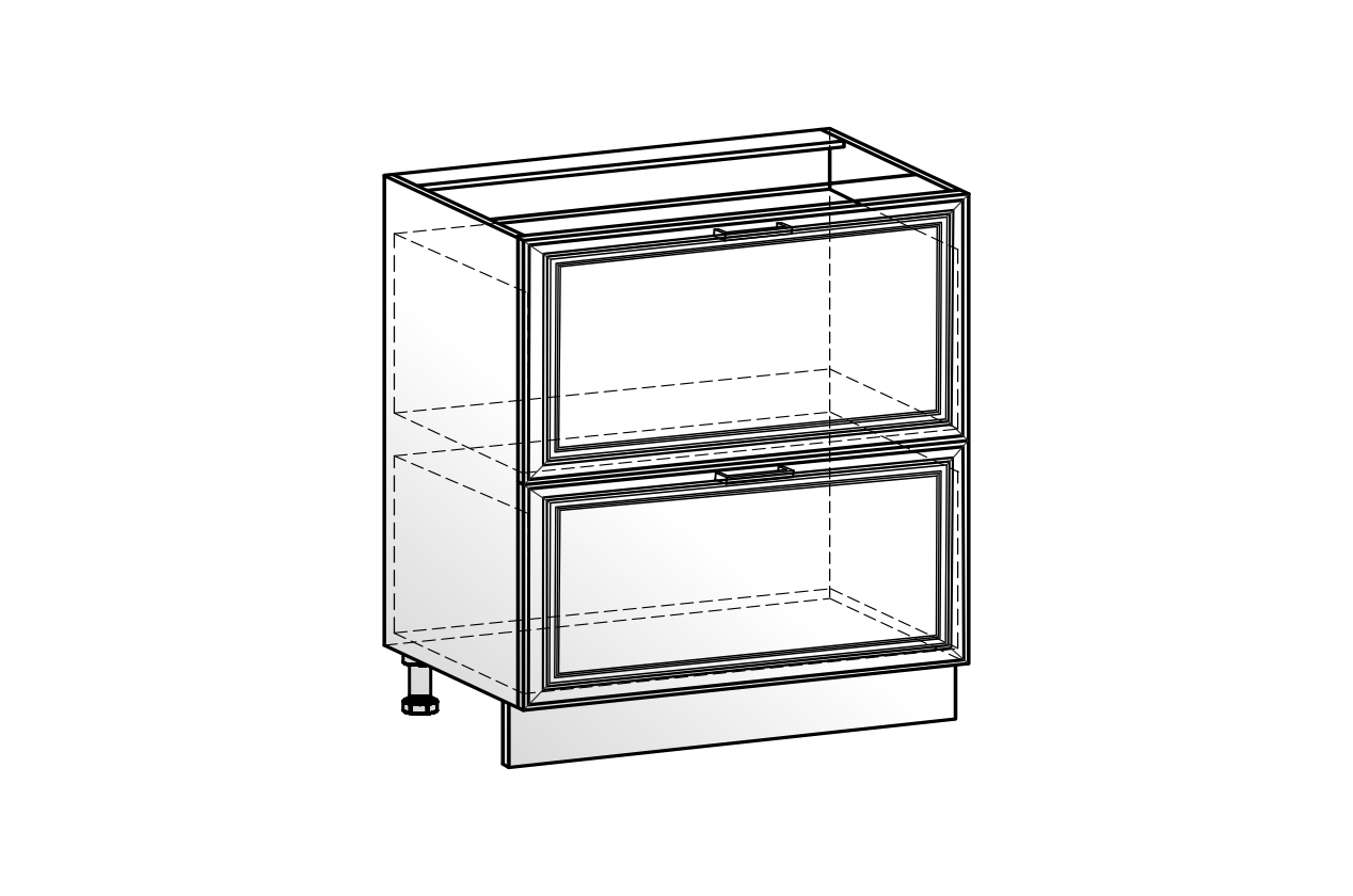 Состоит из: шкаф рабочий с 2-мя выкатными ящиками с системой выдвижения СТАРТ - безшумное открывание.