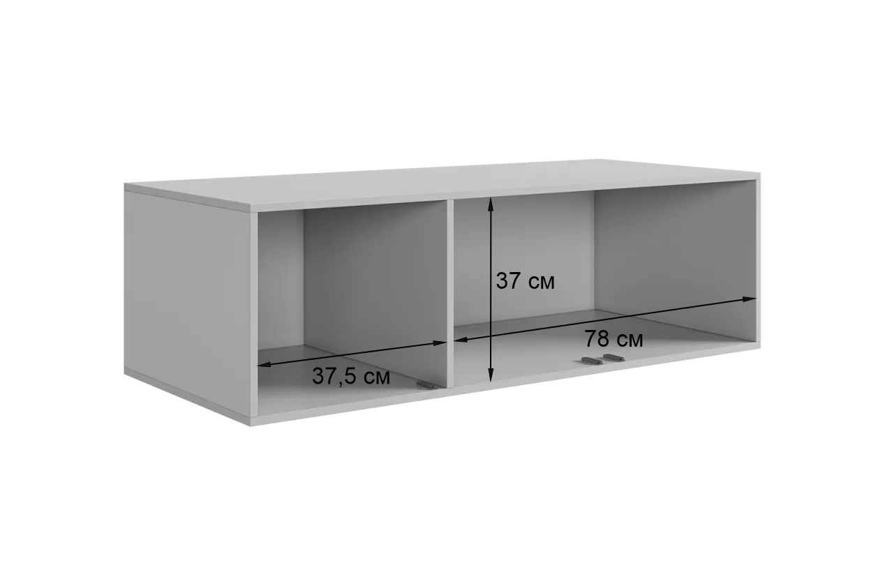 Антресоль изготовлена из качественных материалов: корпус выполнен из ЛДСП, что гарантирует прочность и долговечность, а фасады, выполненные из МДФ в плёнке ПВХ, не только выглядят эстетично, но и защищают антресоль от повреждений.