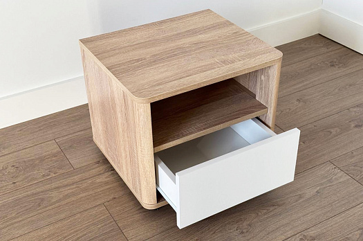 Прикроватная тумба Зара - это отличное дополнение к любой спальне. Ее аккуратный дизайн включает в себя выдвижной ящик и открытую нишу для удобного хранения ваших личных вещей. Особое внимание уделено безопасности: углы тумбы аккуратно скруглены, исключая острые выступы, что делает ее идеальным решением для спальни.