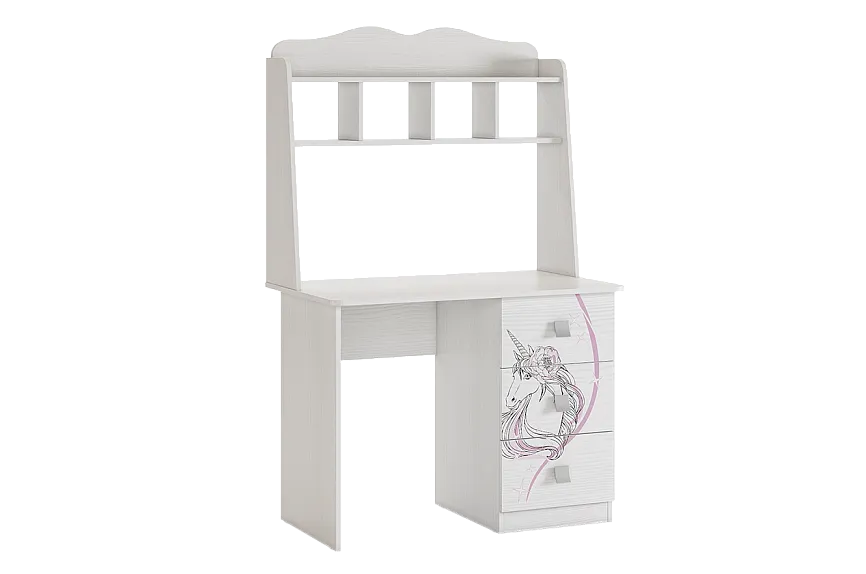 - Столы с надстройкой — обычно имеют больше полочек или выдвижных ящиков для удобного хранения школьных принадлежностей.