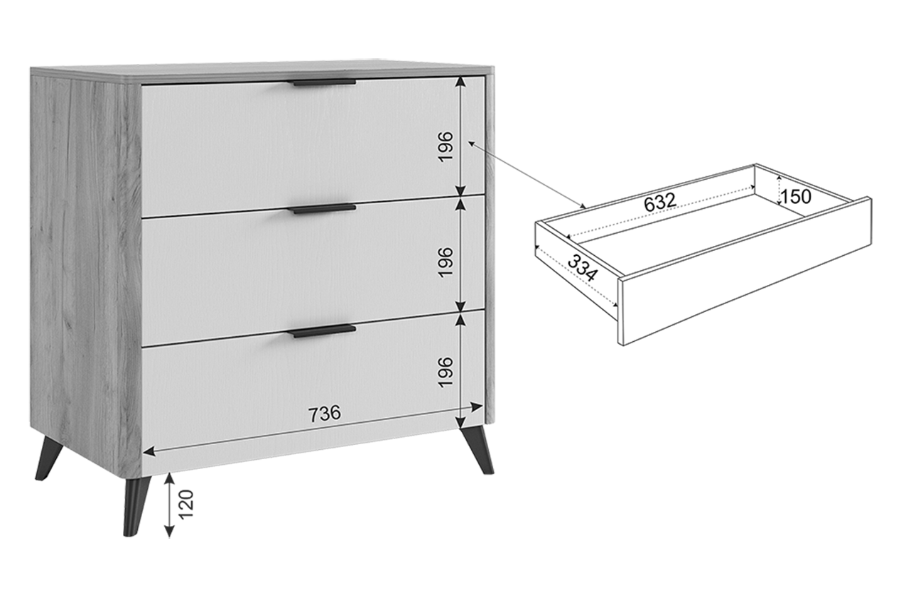 Адам Комод дуб крафт золотой/белое дерево из каталога Комоды купить в Санкт-Петербурге в магазине мебели онлайн Мебельсон по цене 10 390 ₽