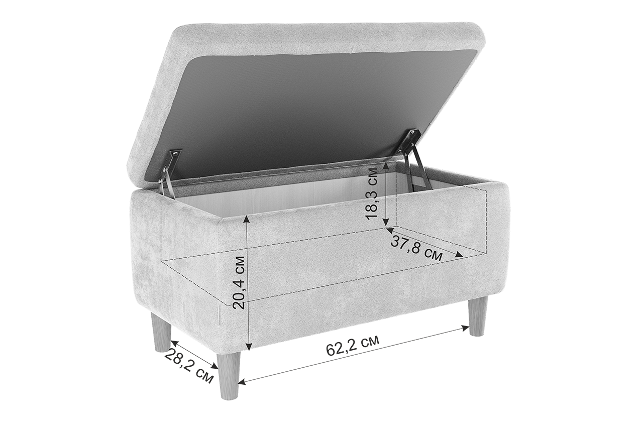 Пуф "Чарли 2" незаменимая классика, плавные линие, деревянные опоры 130мм, которые очень легко откручиваются, каретная стяжка придают изысканный стиль. Скрытый внутренний ящик позволит организовать дополнительное хранение. Механизм открывания крышки продуман так, что вы сможете ставить его вплотную к стене.Пуф "Чарли 2" отлично впишется в интерьер вашего дома.