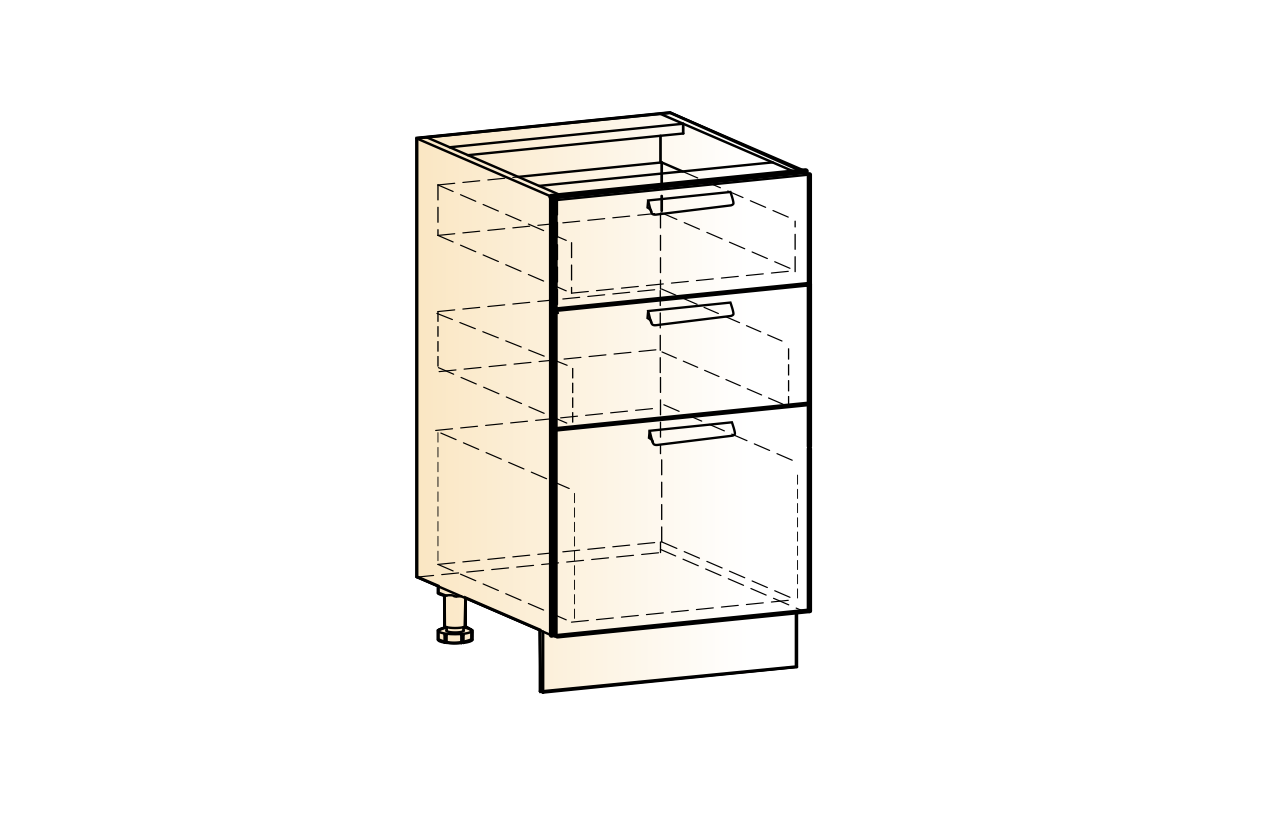 Шкаф рабочий с выкатными ящиками, из серии «Джаз». Замечательно подойдет для хранения кастрюль и сковород, а также столовых приборов.