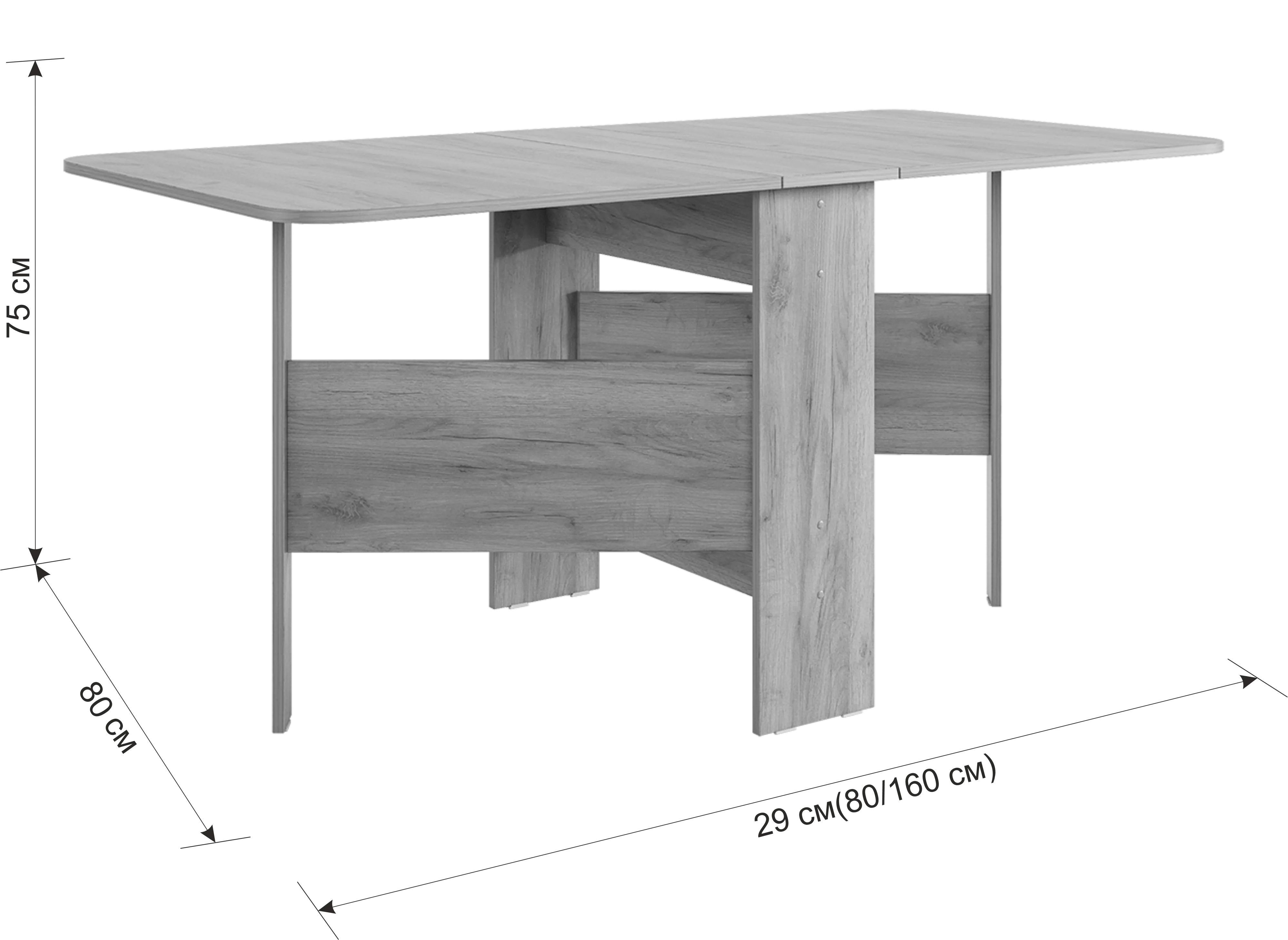 Разложение стола осуществляется путем поднятия одной из створок, выдвижения опоры и последующего опускания створки до полного соединения. Выберите Стол-книжка раскладной Мечта 2 и наслаждайтесь комфортом и качеством!
