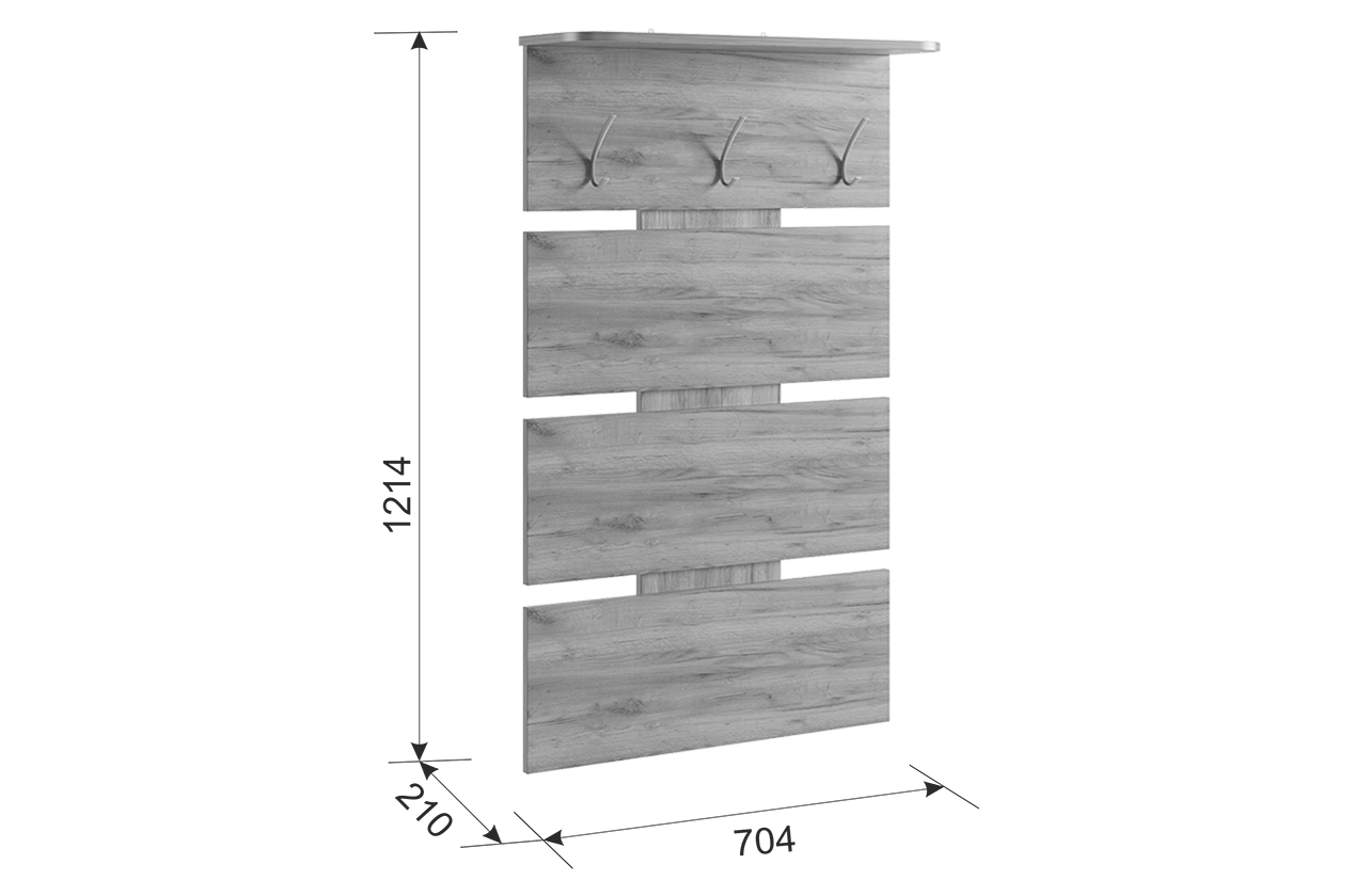 Вешалка Реал 2 - это прекрасное решение для малогабаритных пространств. Отсутствие избыточных деталей и симметричный дизайн делают ее универсальной и адаптируемой к любому интерьеру. На вешалке предусмотрены металлические крючки, которые идеально подойдут для размещения верхней одежды и сумок. Полка сверху предназначена для удобного хранения головных уборов.