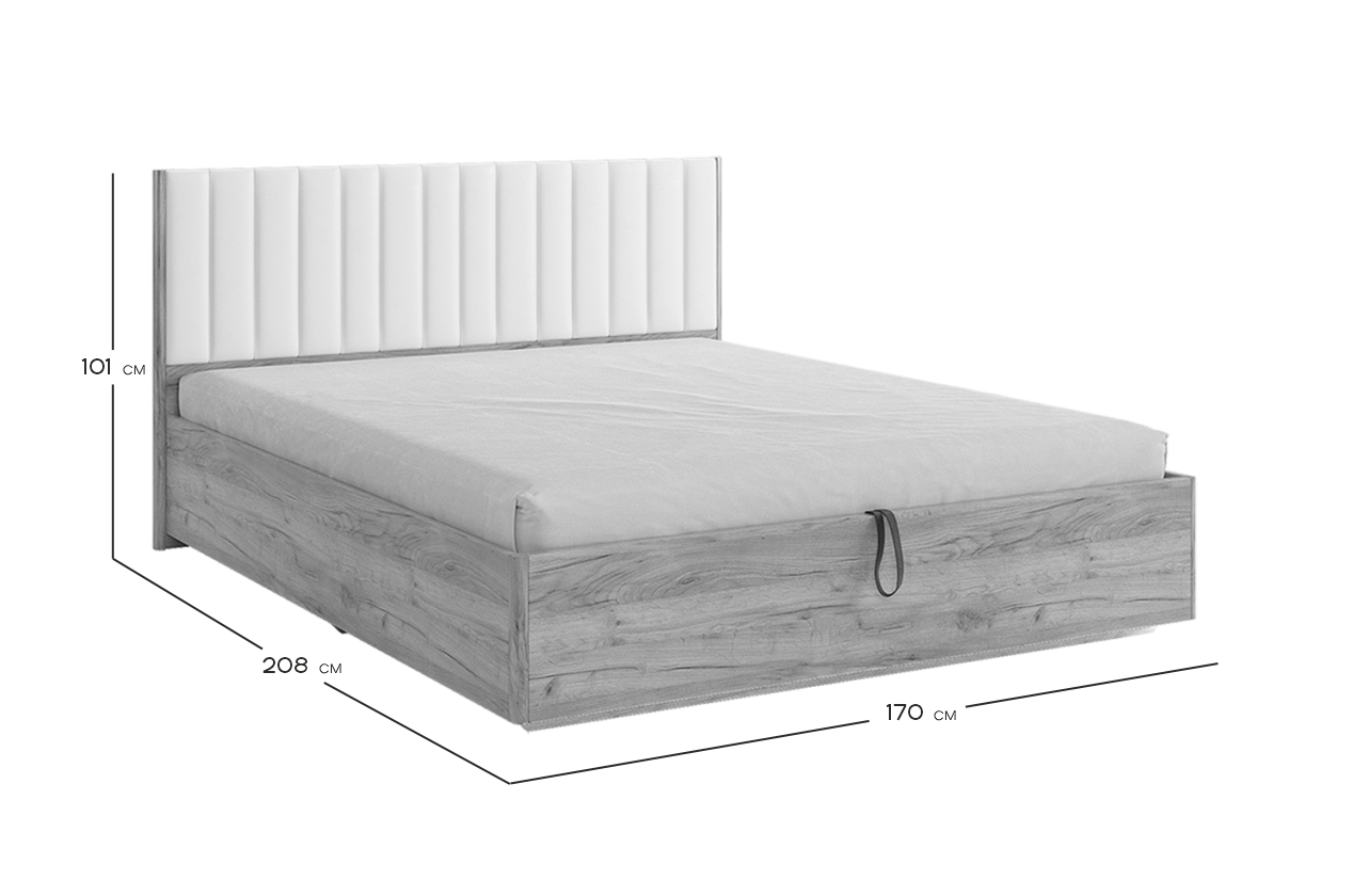 Она не только прекрасно выглядит, но и предлагает дополнительное место для хранения благодаря своему подъемному основанию. Для полноты комфорта учитывайте, что матрас и настил следует приобрести отдельно.