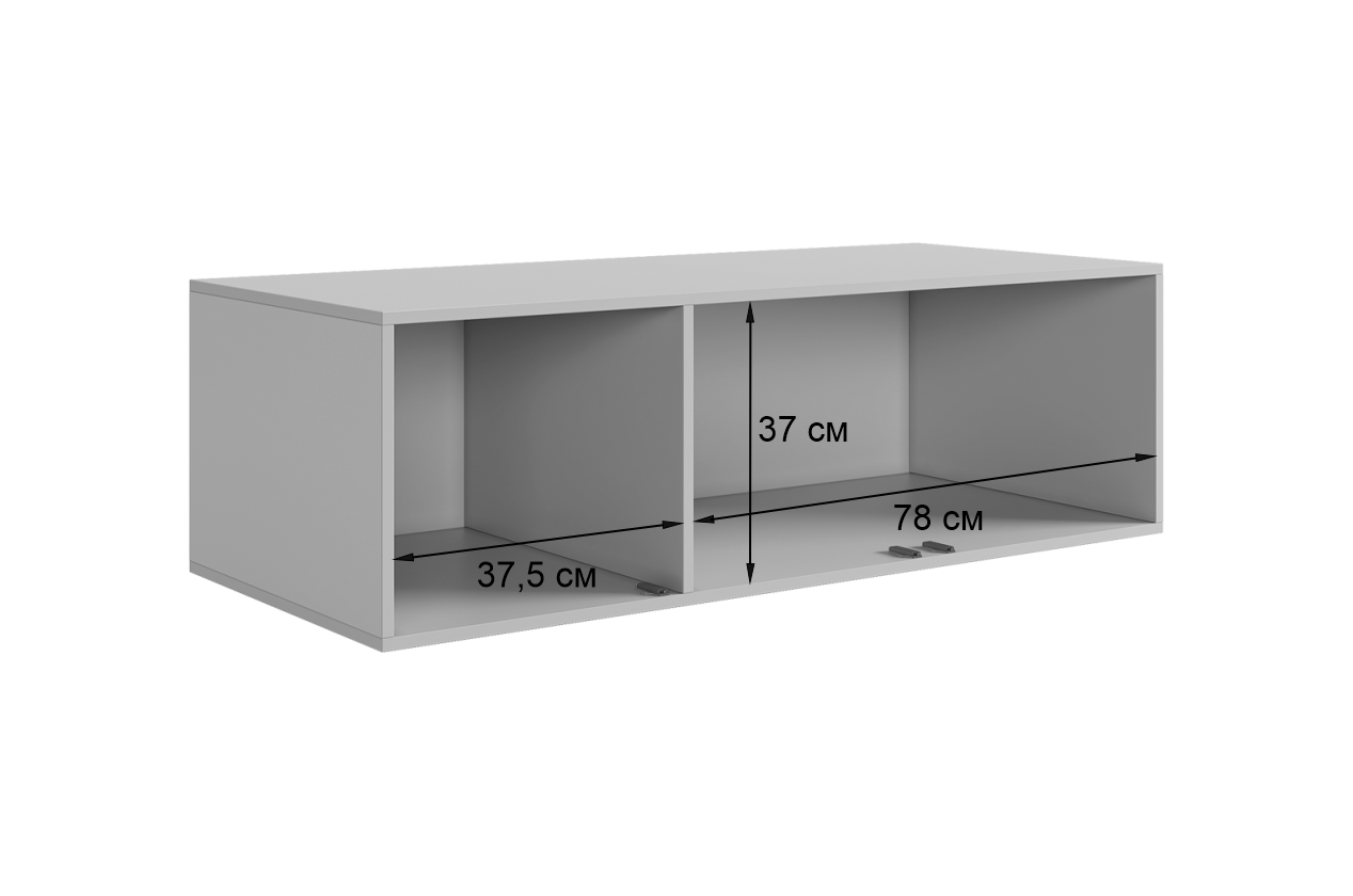 Антресоль изготовлена из качественных материалов: корпус выполнен из ЛДСП, что гарантирует прочность и долговечность, а фасады, выполненные из МДФ в плёнке ПВХ, не только выглядят эстетично, но и защищают антресоль от повреждений.