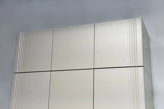 Особое внимание заслуживает фрезеровка фасадов, которая придаёт антресоли изысканный вид. Толкатели PUSH вместо ручек обеспечивают удобное открывание нажатием.
