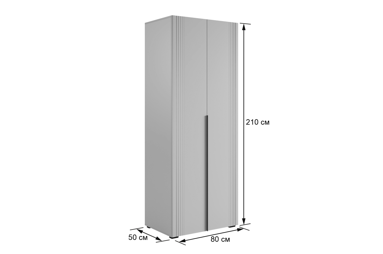 Шкаф оснащён длинными пластиковыми ручками и имеет удобное внутреннее наполнение: две большие полки и одна длинная штанга. Это позволяет рационально использовать пространство и разместить различные типы одежды.
