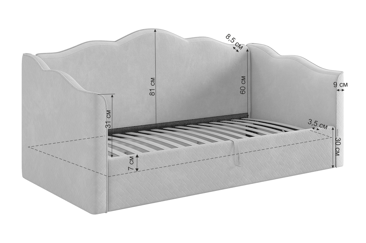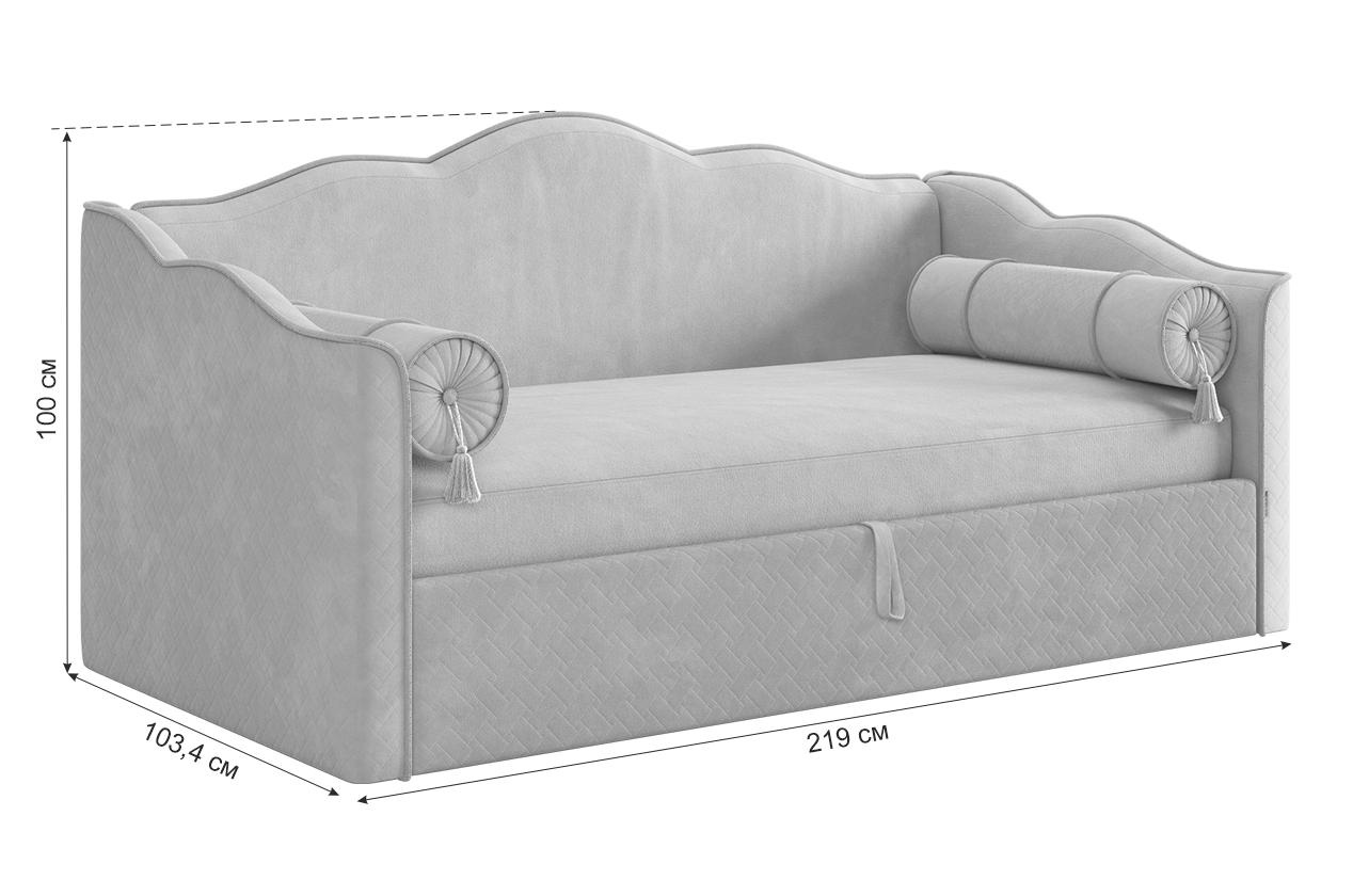 Кровать оснащена надежным подъемным механизмом, обеспечивающим доступ к вместительному ящику для хранения постельного белья и других вещей. Декоративные подушки с кисточками добавляют изысканности (входят в комплект), а специальный чехол для матраца обеспечивает дополнительную гигиеничность и удобство использования (комплектуется отдельно). Выберите кровать-софу "Лея" для создания уютной и функциональной спальной зоны в вашем доме!
