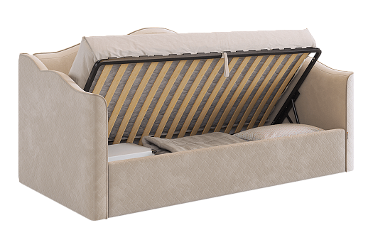 Кровать с подъемным механизмом Лея (Софа) 90х200 см крем (велюр)/латте (велюр) из каталога Детские кровати купить в Санкт-Петербурге в магазине мебели онлайн Мебельсон по цене 51 390 ₽